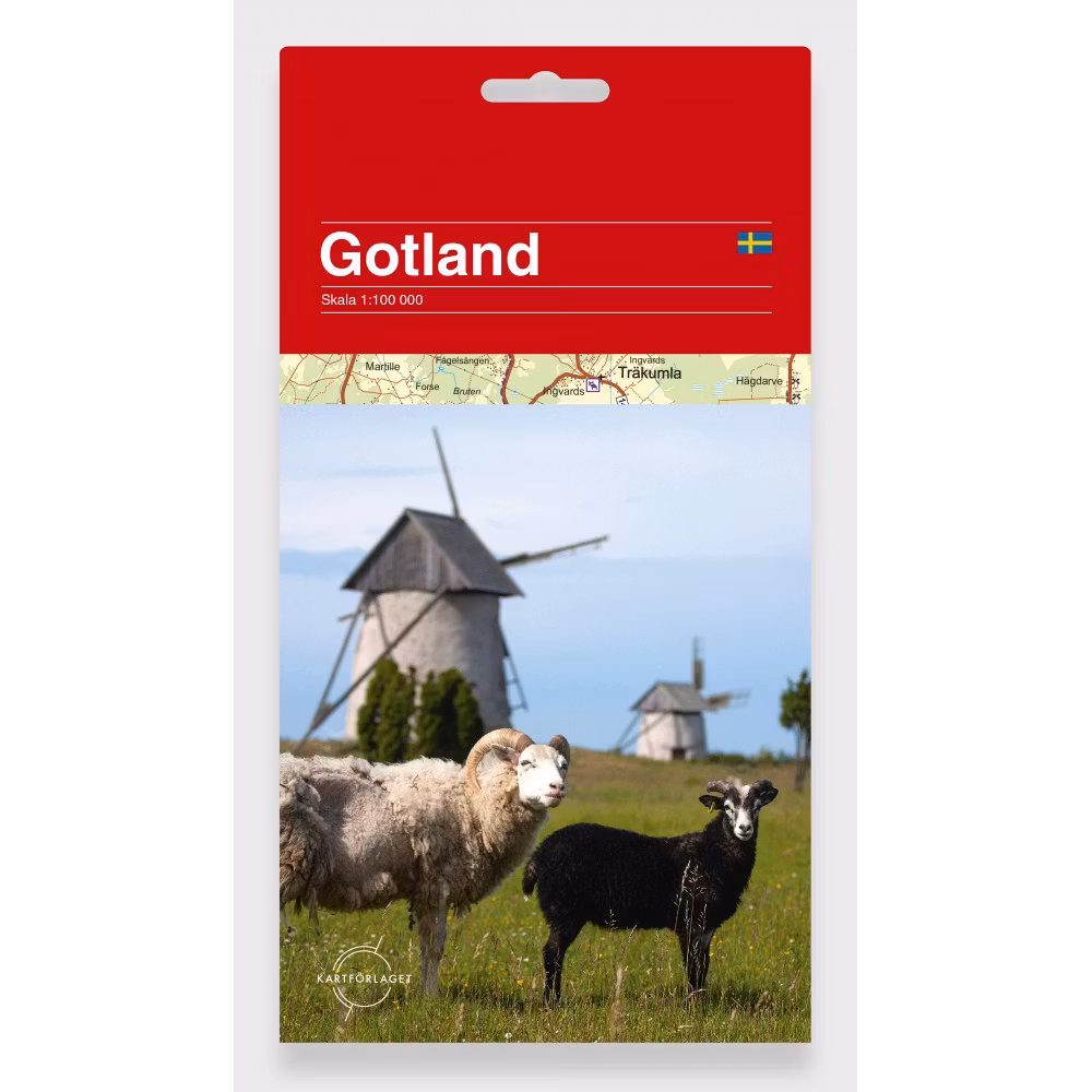 En detaljerad vägkarta som passar för att utforska Sveriges största ö med cykel eller bil. Kartan visar både bilvägar och markerad cykelväg (Gotlandsleden). Symboler för hotell, campingplatser, stugbyar och vandrarhem. Turistinformation som visar badplatser, golfbanor, väderkvarnar, fornminnen och många andra sevärdheter.