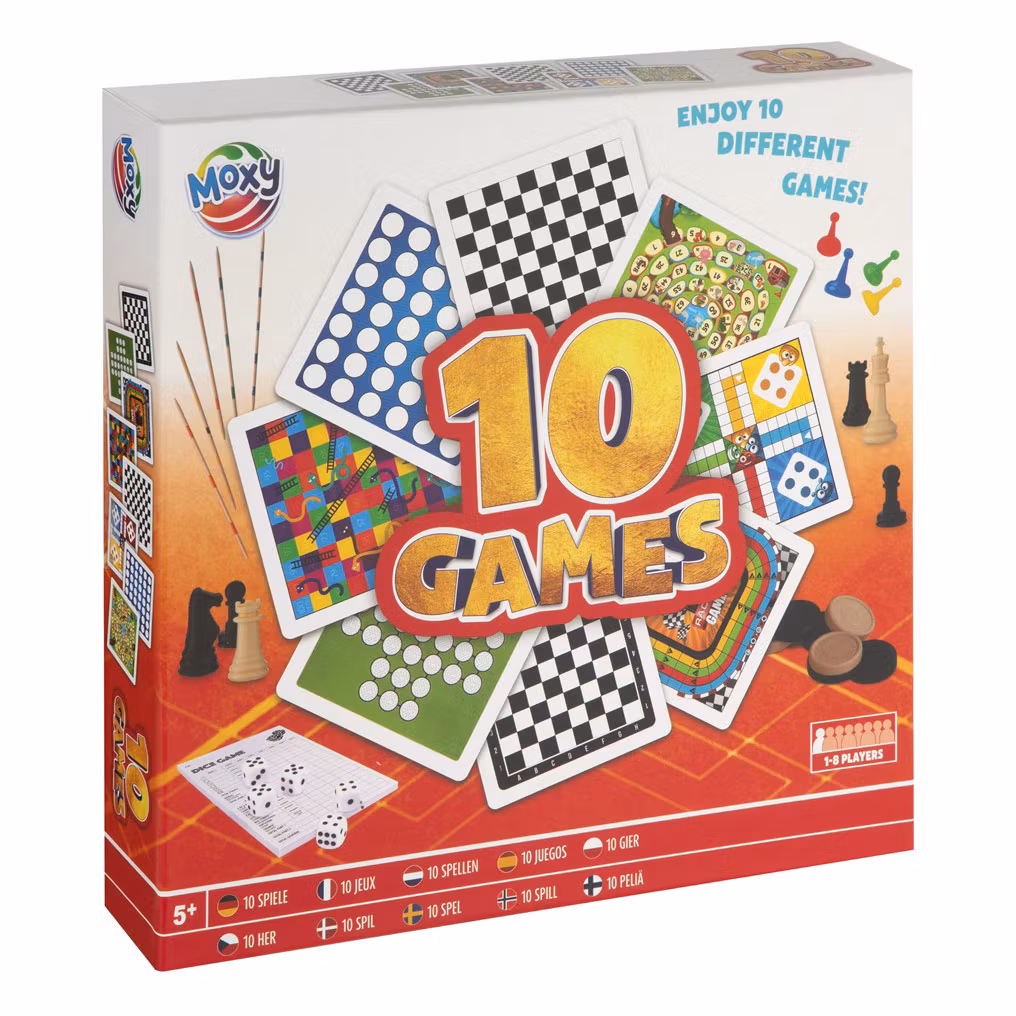 10 klassiska spel, allt i en låda, Praktisk allt-i-ett-spelbox med 10 olika spel för hela familjen, till exempel ludo, schack, mikado, yatzy och mycket mer.