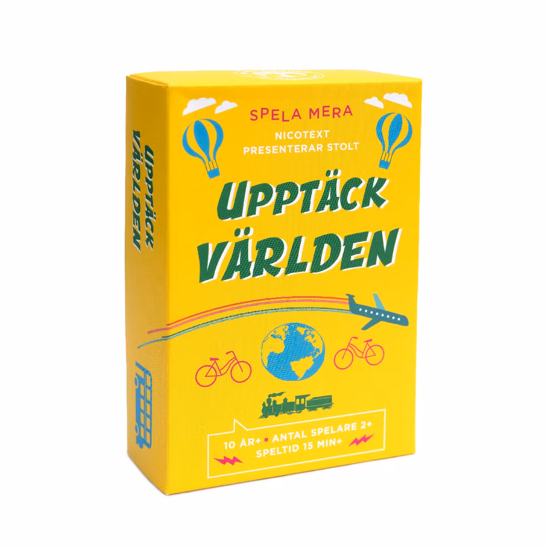Upptäck världen är ett roligt sällskapsspel som ger hela familjen chans att lära sig mer om världens olika länder, städer och platser. Fem kluriga ledtrådar i fallande svårighetsgrad guidar spelarna på en äventyrlig färd hemma vid soffbordet eller då ni är på resande fot. Följdfrågorna testar dina kunskaper i geografi, populärkultur och historia.